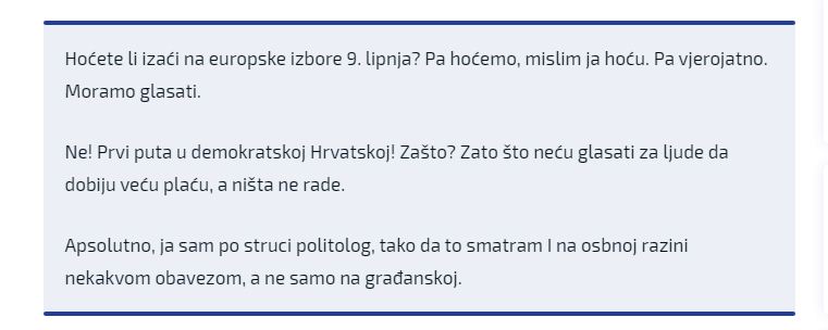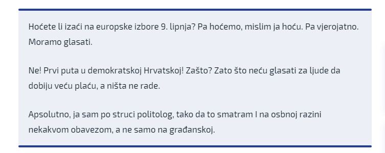 Izlaznost je u Hrvatskoj niska. Na prošlim je izborima bila na oko 30 posto, Prosjek Unije je nešto viši od 50 posto. Od tuda i ovaj slogan ureda europskog parlamenta.