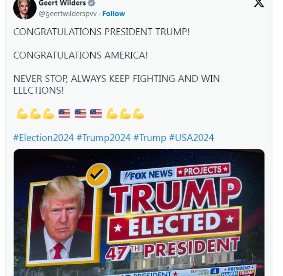 “Čestitke predsjedniče Trump! Čestitke Ameriko! Nikada nemoj stati, uvijek se bori i pobijeđuj na izborima!”, poručio je kontroverzni nizozemski političar Geert Wilders.