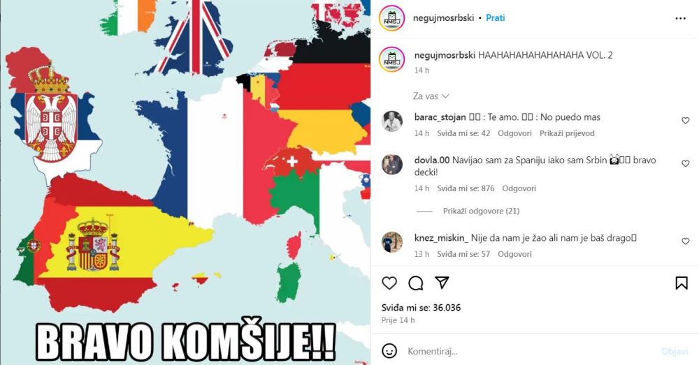 “Navijao sam za Španiju iako sam Srbin. Bravo, dečki!”, “Iako sam Srbin, moram iskreno reći da mi je žao”, “Čujem da je bio potres kod susjeda, 3:0” i “Nije da nam je žao, ali baš nam je drago”, neki su od komentara ispod objave.