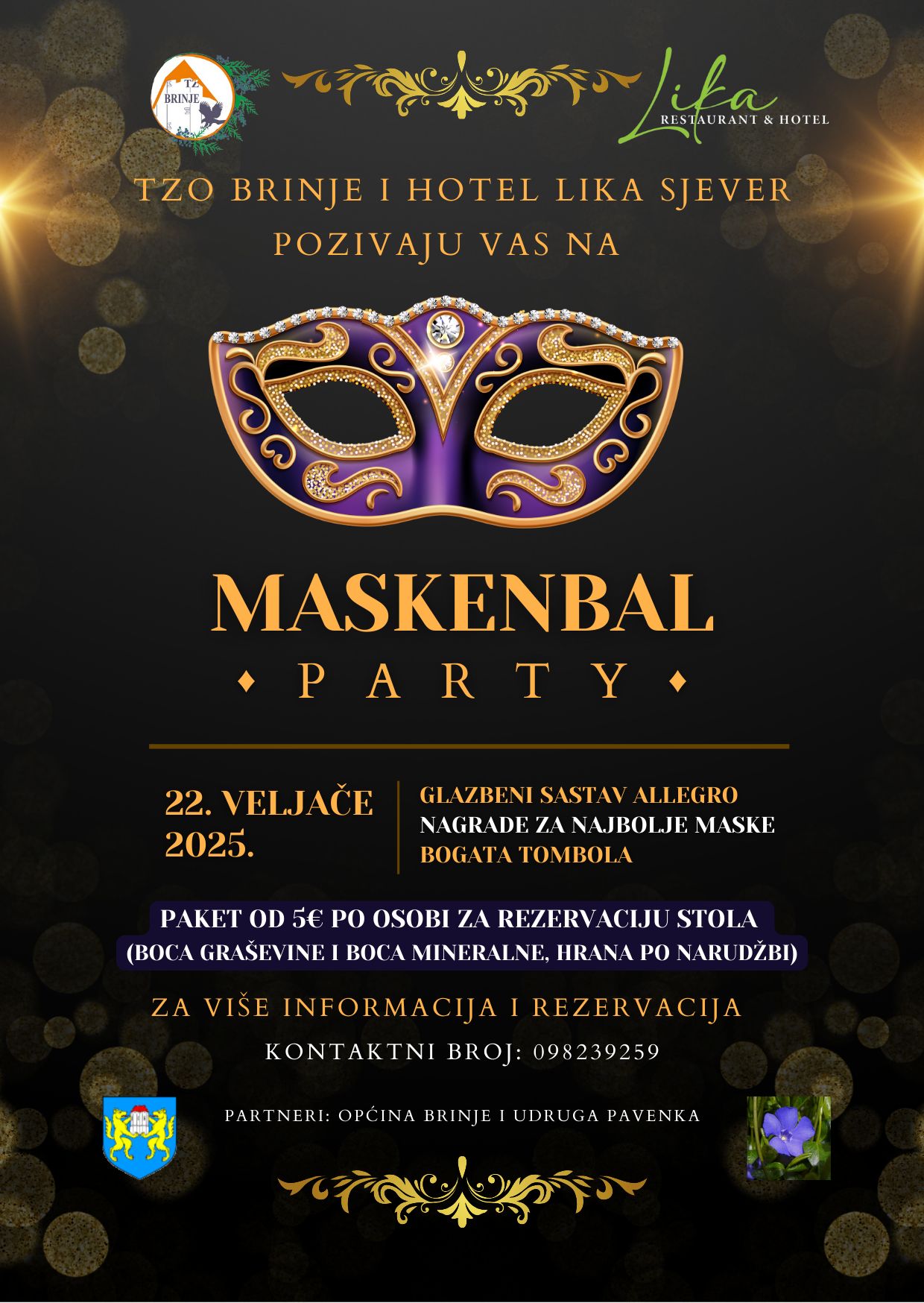 TZO BRINJE I HOTEL LIKA SJEVER VAS POZIVAJU NA MASKENBAL PARTY!