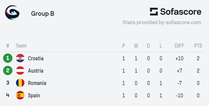 Dvije najbolje reprezentacije iz naše skupine plasirat će se u drugi krug.