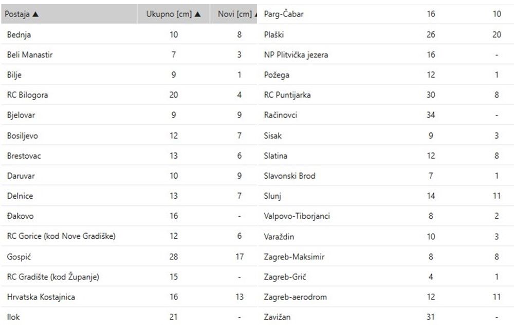 Unutrašnjost: Nastavak padalina; u Lici se očekuje daljnje povećanje snježnog pokrivača.